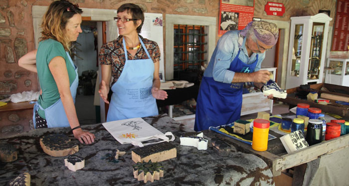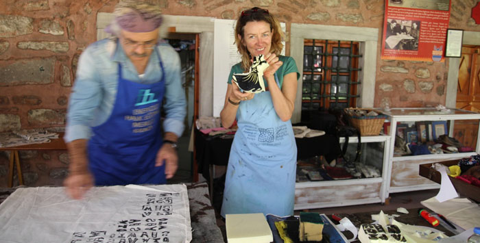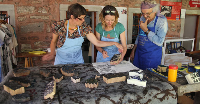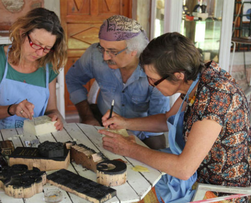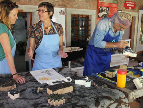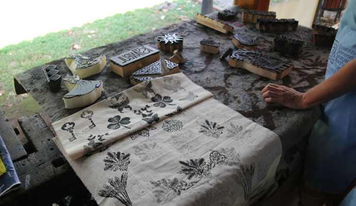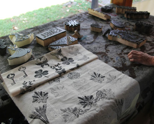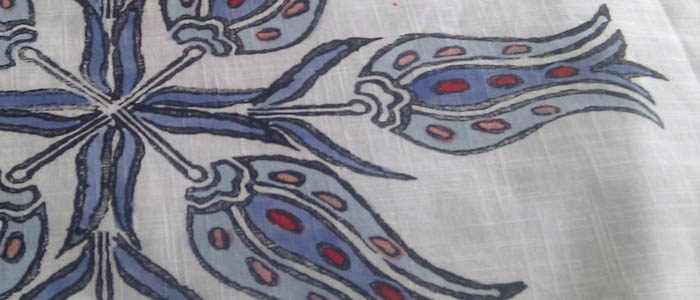 Woodblock printing on textiles is the process of printing patterns on textiles, usually of linen, cotton or silk, by means of incised wooden blocks. It is the earliest, simplest and slowest of all methods of textile printing. Block printing by hand is a slow process. It is, however, capable of yielding highly artistic results, some of which are unobtainable by any other method.